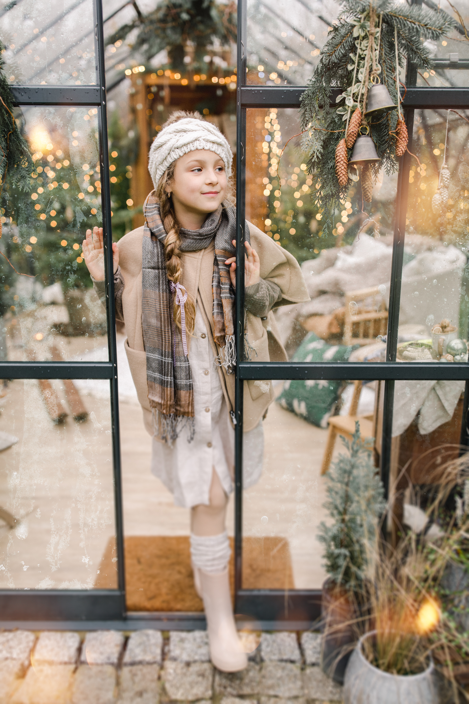 Kiedy przekraczasz próg szklarni, wchodzisz w zupełnie inny świat. Wnętrze wypełnia miękkie, naturalne światło, a powietrze pachnie świerkiem i cynamonem. W tle rozbrzmiewa delikatna muzyka, a wokół Ciebie tańczą promienie słońca wpadające przez szklane ściany. Każda aranżacja jest dopracowana w najdrobniejszych detalach – naturalne tkaniny, drewniane dodatki, świąteczne gałązki i subtelne światło tworzą atmosferę pełną ciepła i nostalgii. To sceneria, w której nie musisz pozować. Wystarczy, że jesteś – ze swoim dzieckiem, partnerem, rodziną. Resztą zajmę się ja.